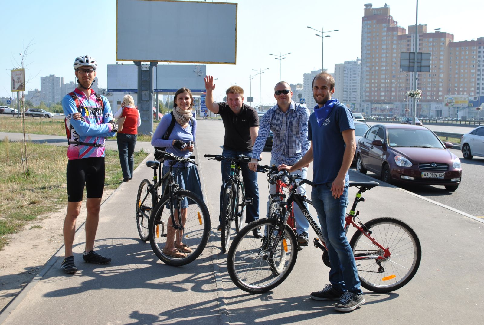 Члени ДемАльянсу Олег ЖИДЕЛЯЄВ та Андрій СІДЛЯРЕНКО разом з активісткою Асоціації велосипедистів Києва та представниками Дарницької районної в місті Києві державної адміністрації провели моніторинг стану велосипедних доріжок у Дарницькому районі.