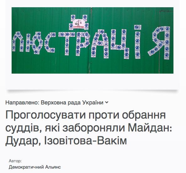 Демократичний Альянс звернувся до нардепів з вимогою не голосувати за суддів | On-line петиція