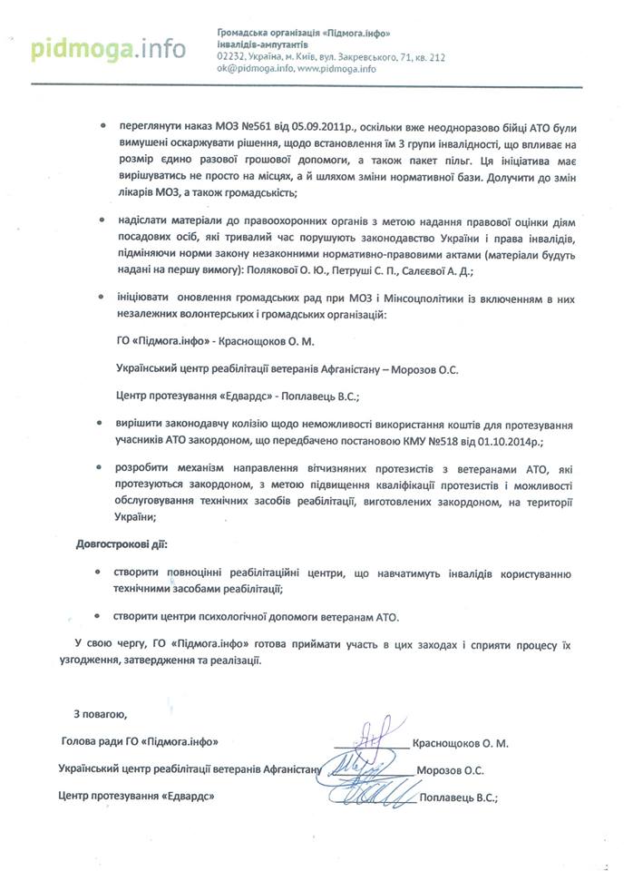 5. Нас підтримали: Політична партія «ДемАльянс», ГО «Волонтерська Сотня Доброволя», ТОВ «НМПО», «Український центр реабілітації ветеранів Афганістану», Центр протезування «Едвардс» і це лише початок!
