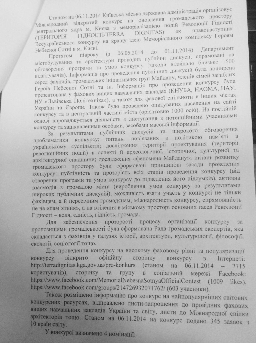 Оприлюднення конкурсних проектів очікується вже в березні 2015 року.
