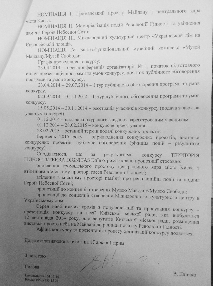 За результатами конкурсу «Територія гідності» КМДА сподівається отримати кращі пропозиції стосовно: