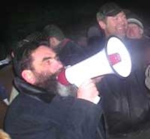 Ми зайшли до ДК. Стареньке, але дуже просторе приміщення. З рота йде пара. В центрі зала сидять люди в тулубах, здебільшого жінки похилого віку. Активно обговорюють останні події. Я подивився на годинник - час п’ятнадцять. Перерахував людей - в залі 43 людини. Подумав, що нічого цікавого тут не буде і взагалі день можна було краще використати. В цей момент в зал забігає бабуся в хустинці і починає голосити щоб всі йшли зустрічати Його. Кого його ніхто не зрозумів, але всі вийшли. Я так зрозумів, що для місцевих якщо хтось приїхав, то це вже свято. Коли я вийшов з ДК, то під зойки місцевих побачив таку вражаючу картину: їде машина, на якій стоять колонки, мабуть що з них лунає колокольний дзвін, за машиною іде хор людей з тридцяти, які голосять щось, від чого стає страшнувато, а далі йде колона людей в сто п’ятдесят з хоругвіями, біло-блакитними прапорами і прапорами з двоглавими орлами. Здебільшого жінки, з закритим волоссям, пустими безрадісними очима і обов’язкова іконка в рушничку. Іконки самі різні. Творчість ллється через край. Мені наприклад дуже сподобалася іконка з зображенням Романова в кітелі з нагородами і німбом над головою. Якщо казати про місцевих, то вони просто впали в містичний шок. А якщо казати про рівень організації процесу, то він вражає – Кауров не дарма їсть свій хліб. Миттєво з’являється мікрофон і він повідомляє всім, що вони прийшли підтримати православних с. Кам’янка над яким вже два роки кружиться нечисть. Далі він сказав, що захоплювати храм не збираються (цікаво, щоб він казав, якби міліції не було?) а збираються підтримати місцевих священною хресною ходою.