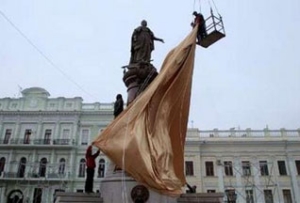 Ще за кілька днів до відкриття пам’ятника можна було побачити по телебаченню заклики депутата Р.С. Тарпана до одеситів, з проханням прийти на справжнє свято одеситів. Для кого цей день лишився святом – лишається таємницею, бо розчарованими з площі пішли як і прибічники влади, так і опоненти. Вже о четвертій годині на площу було пройти важко, з усіх сторін стояла міліція, і народ шукав серед натовпу своїх знайомих. Крім того, можна було побачити сам пам’ятник замотаний в золоту тканину, одразу ж в голову приходила думка, що так зване «свято» зроблено в типово імперських традиціях, по багатому. Поруч стояли музиканти з оркестру і дівчатка в зеленому вбранні, поруч лежали барабани обмотані білим хутром. Вже о п’ятій годині на площу потрапити було практично неможливо, міліція огородила прихильників та протестуючих залізним парканом. З одного боку молодики років шістнадцяти з прапорами партії регіонів та старі бабці з відбитком комуністичної системи на обличчі, прапорами Росії та гербом російської імперії, з іншого боку представники партій: ВО «Свобода», УНП, НРУ, ПРП, КУН, УРП «Собор» та козацькі організації. Представники НУ-НС не встигли перейти за інший бік паркану, так і лишившись до кінця стояти з боку радісних фанатів Катерини.
