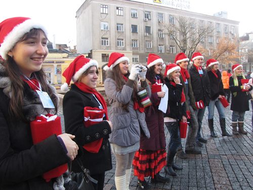 - Після такого привітання волонтери, в примітних шапочках, шаликах і з чарівними скриньками вирушили в дорогу — збирати кошти для закупівлі спортивного обладнання в дитячі будинки та інтернати міста. До акції, окрім активістів «ДемАльянсу» та волонтерів долучились сотні небайдужих сердець, які не шкодували грошей, щоб подарувати малечі позитивні емоції.