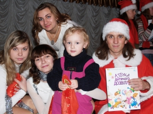 Свято пройшло феєрично, діти не скупилися на оплески, а посмішки на дитячих обличчях створювали додаткове освітлення нашої зали. По закінченню концертної програми Святий Миколай разом з янголами дарував кожній дитині подарунки. Треба було бачити, як блищали їх очі, коли вони отримували подарунки, яким заздрили навіть дорослі. Ми звозили ці подарунки з різних частин України. З Києва до дітей приїхали шикарні ігри ерудит, українською мовою, які в одеських магазинах коштують по 80 гривень, в Харкові ми замовили великі кольорові книжки «Азбука дитячого дозвілля» з серії «Енциклопедія для маленьких вундеркіндів. Солодкі подарунки робили власноруч: на складі «Рошен – Юг» закупили 46 килограм різних цукерок, 6 різновидів батончиків і шоколад, окремо купили мандарини, і ввечері перед святом зробили справжню фабрику Святого Миколая – всі ці солодощі ми розкладали по 156 чобіточкам з червоного флісу з вишивкою під золото.